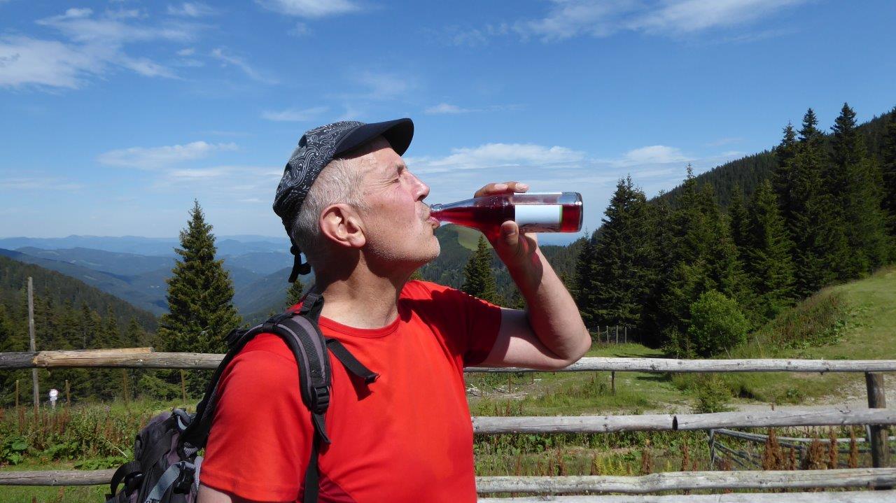 Es folgen etwa 400 steile Höhenmeter durch Wald und Weide. Von oben kommen Helmut und Jan, die mit uns gestartet waren, ein anderes Tempo angeschlagen hatten, und jetzt auf dem Rückweg waren. „Schön war’s mit euch!“ – Wir ziehen dem Gipfel entgegen und erreichen den Speikkogel nach 2 ¾ Stunden Gehens und Fotografierens und Rastens.