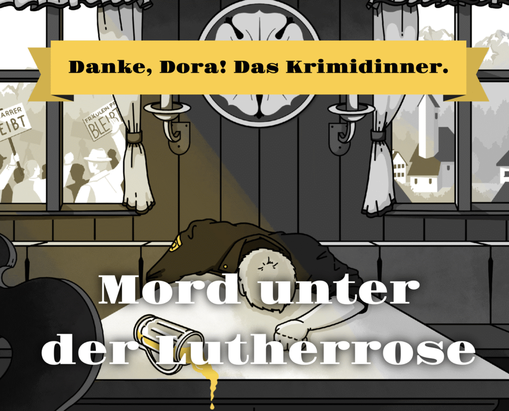 Das Krimidinner ist ein professionell gestaltetes Spiel für 8 Personen und eignet sich perfekt für Jugendgruppen, Presbyteriumsklausuren, Frauenkreise oder private Treffen. Es beschäftigt sich auf spielerische Weise mit der Geschichte der ersten ordinierten Pfarrerin Österreichs Dora Winkler-Herrmann und ihrer Geschichte.